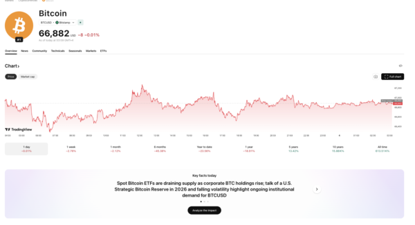 BTCUSD now trading near $66,882 on circulating early-April references. Chart: TradingView