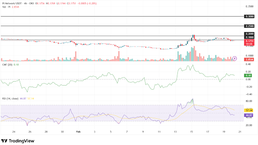 As of February 20, Pi Coin traded near $0.1756, holding above a key short-term support zone.