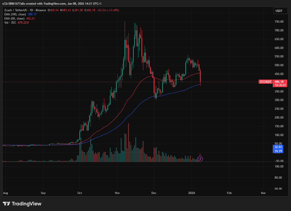 ZEC is now trading below its major moving averages | source: TradingView